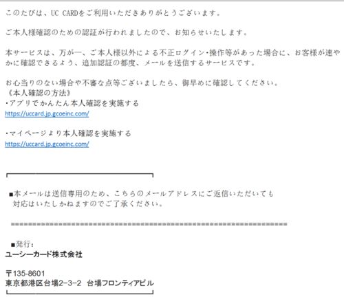【図表】【メールプロパティ】 項目 内容 差出人 ユーシーカード株式会社 <lyktxxadxi@uccard.co.jp> 送信日時 Thu, 30 Sep 2021 02:17:22 +0900 件名 【ユーシーカード】ご本人様確認完了のご連絡 通信先 hxxps://uccard.jp.gcoeinc.com/ 【メールプロパティ(詳細)】 項目 内容 送信</lyktxxadxi@uccard.co.jp>…