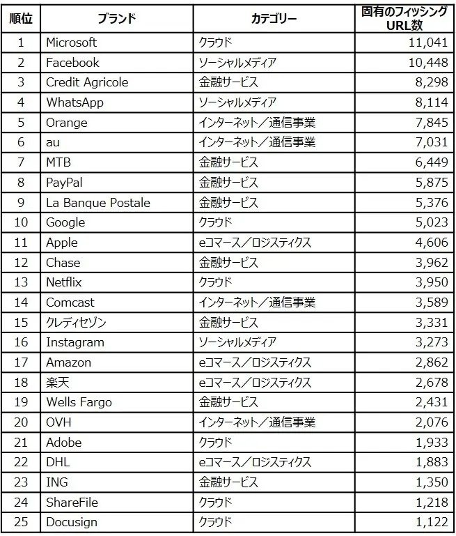 ◆フィッシングでなりすましの多いブランド 2位Facebook、1位は? (ITmedia, 2022/08/05 16:55)