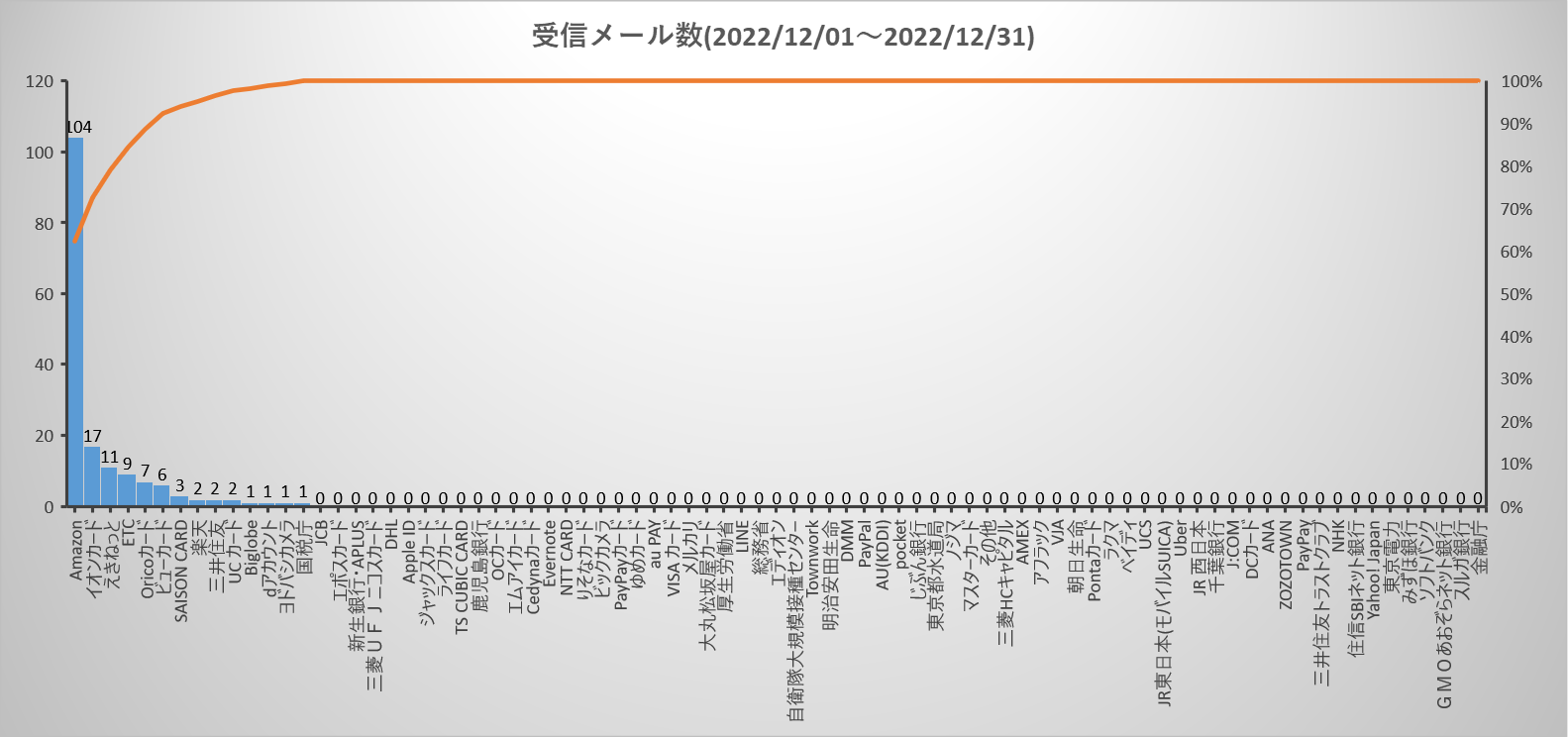 【組織別受信メール件数】(筆者の特定メールアドレスでの受信数)